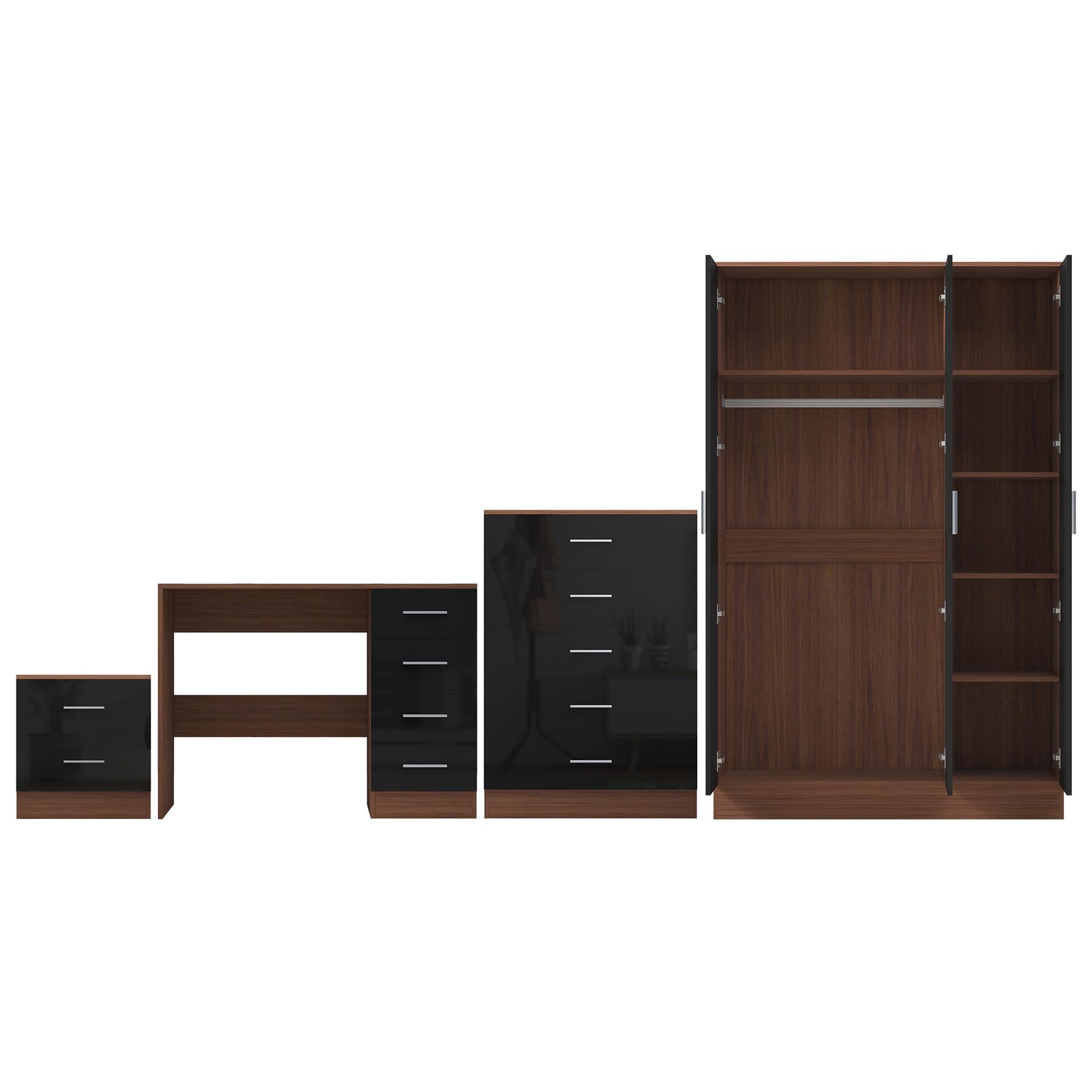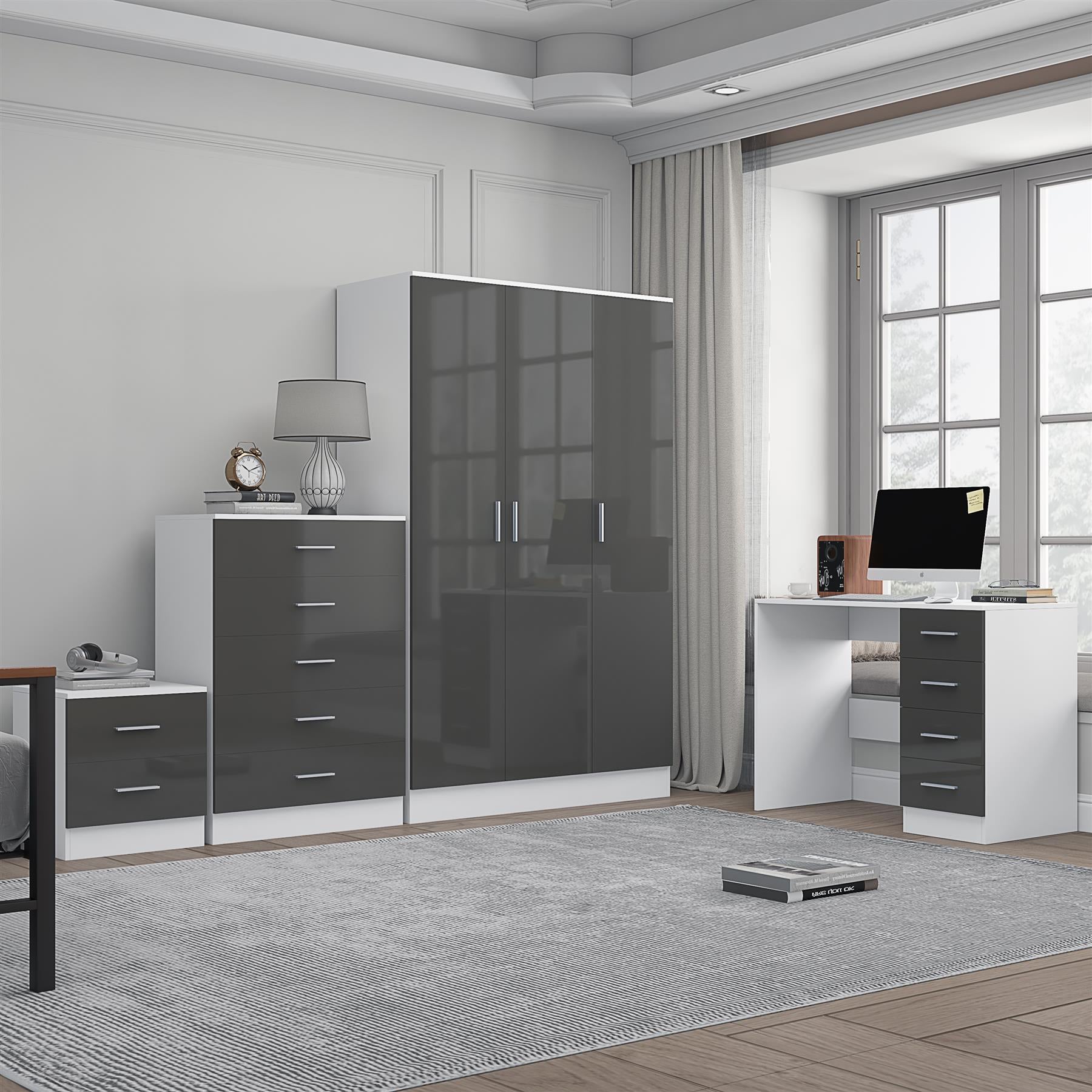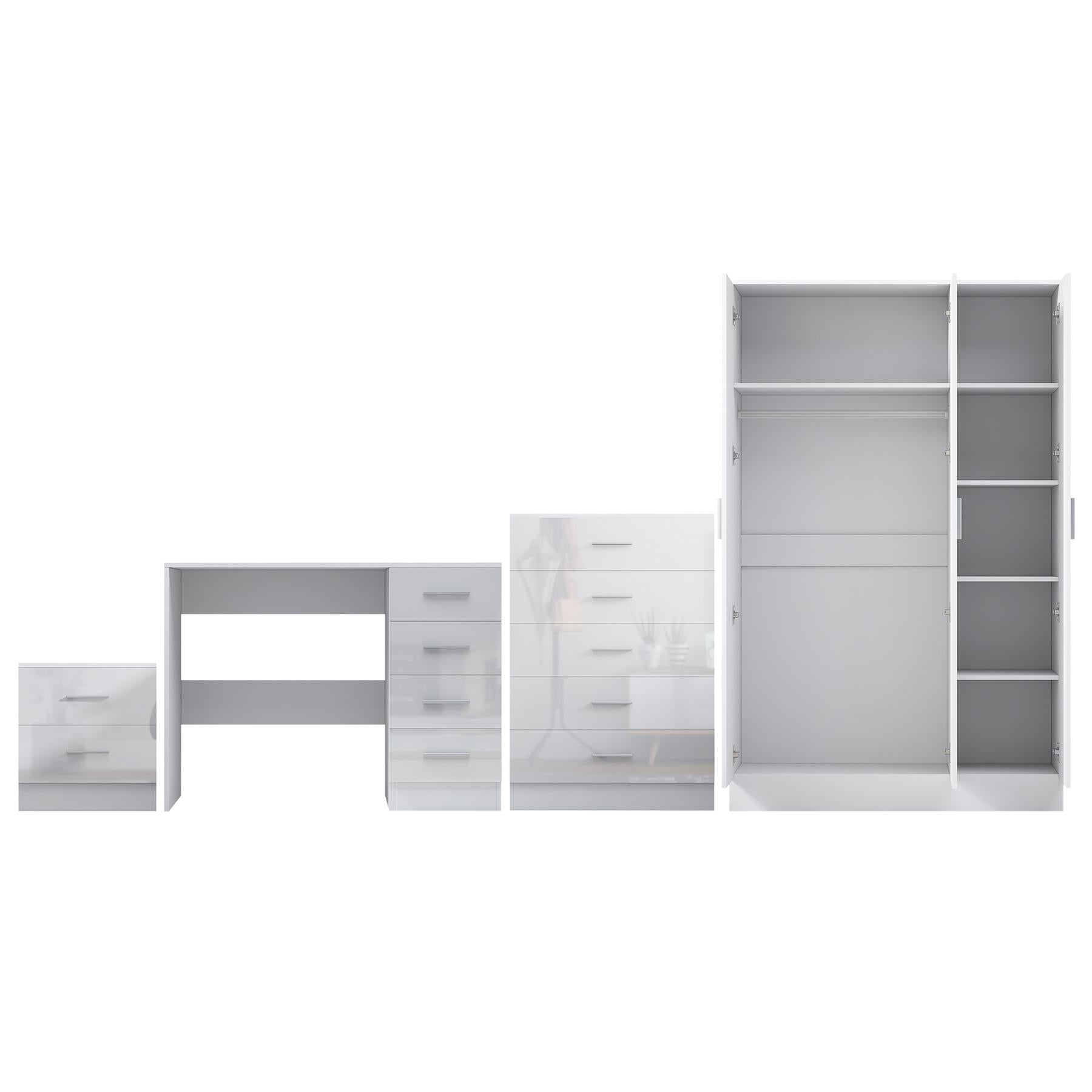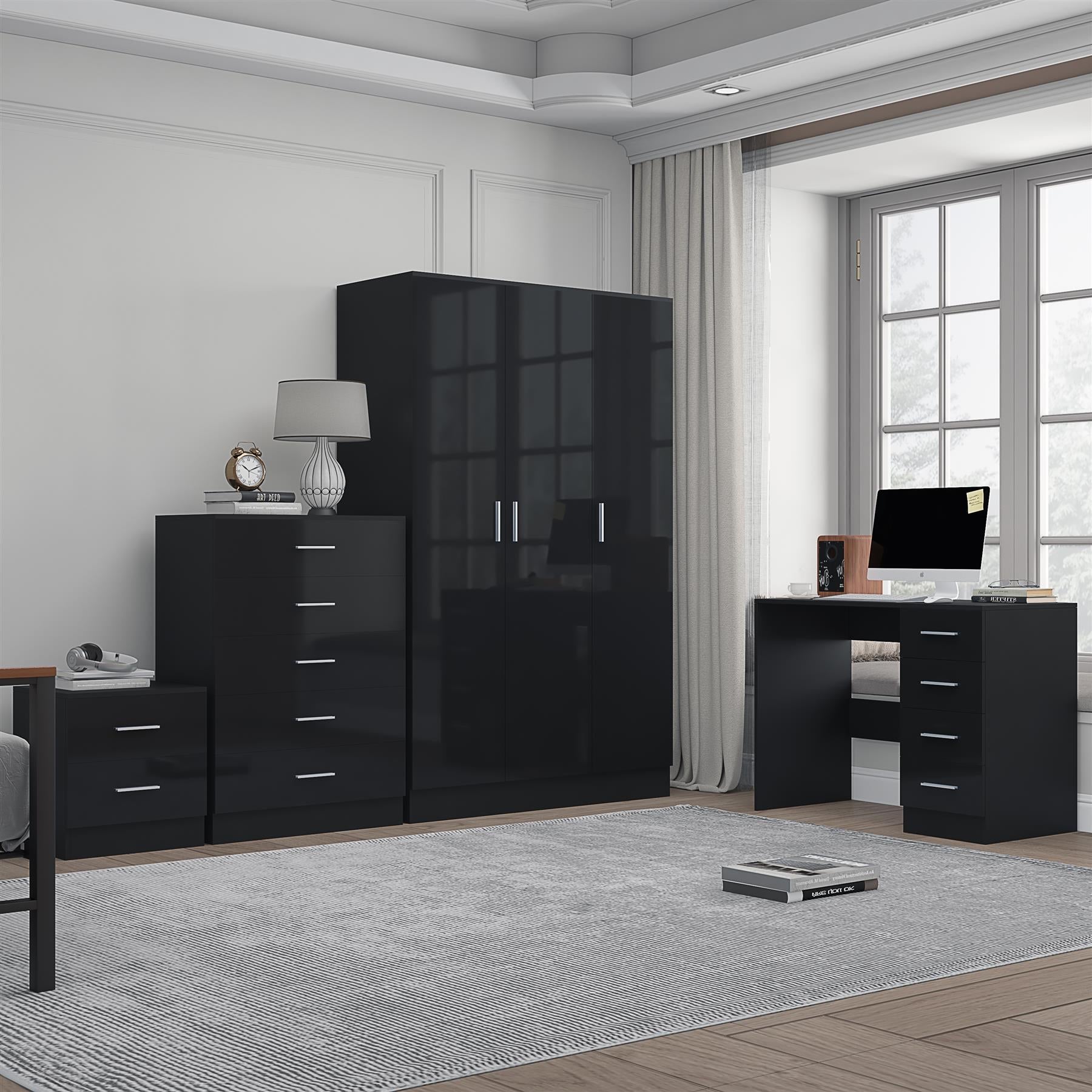 SaleREFLECT Gloss 4pc Bedroom Set - 3 Door Wardrobe + Tall Chest + Bedside + Desk