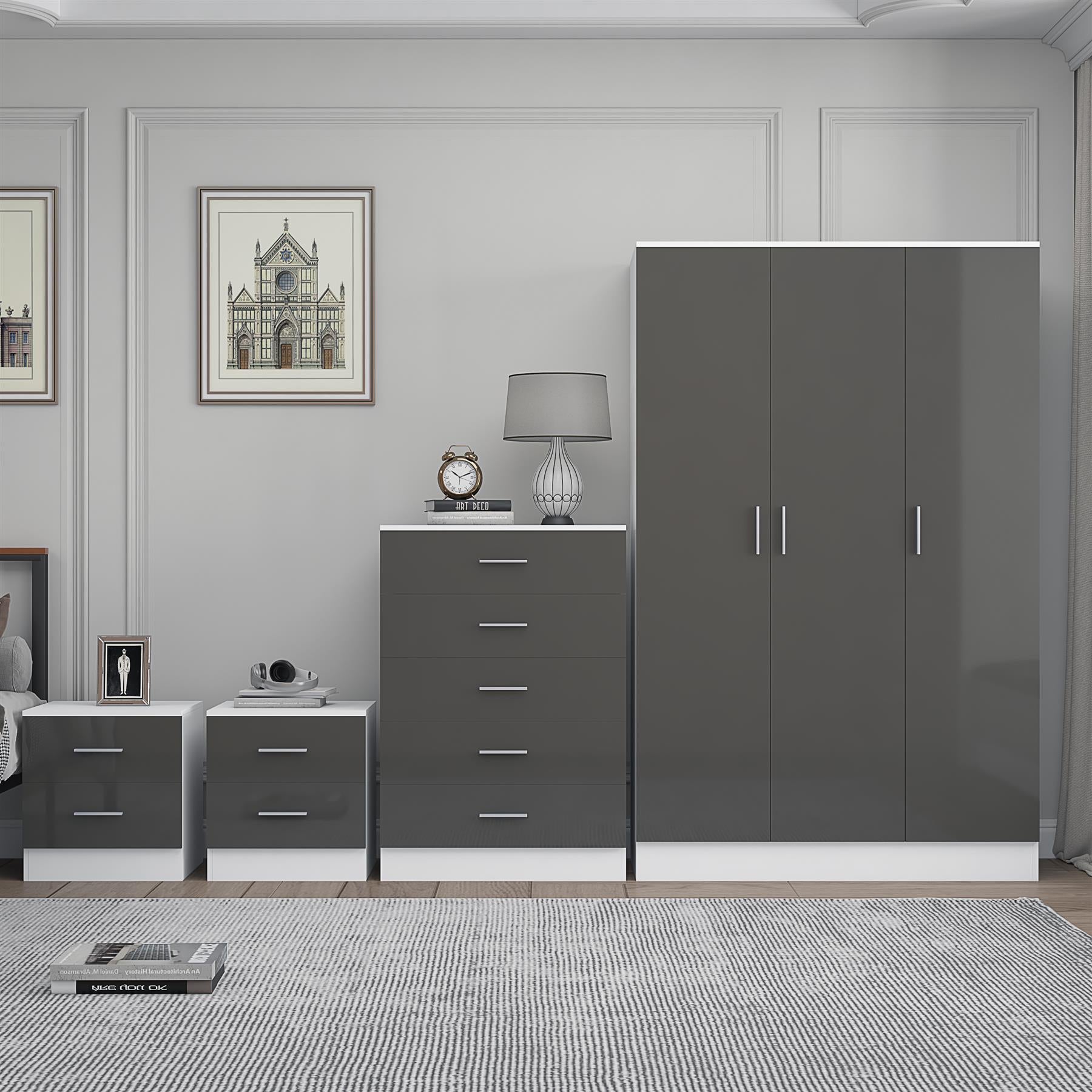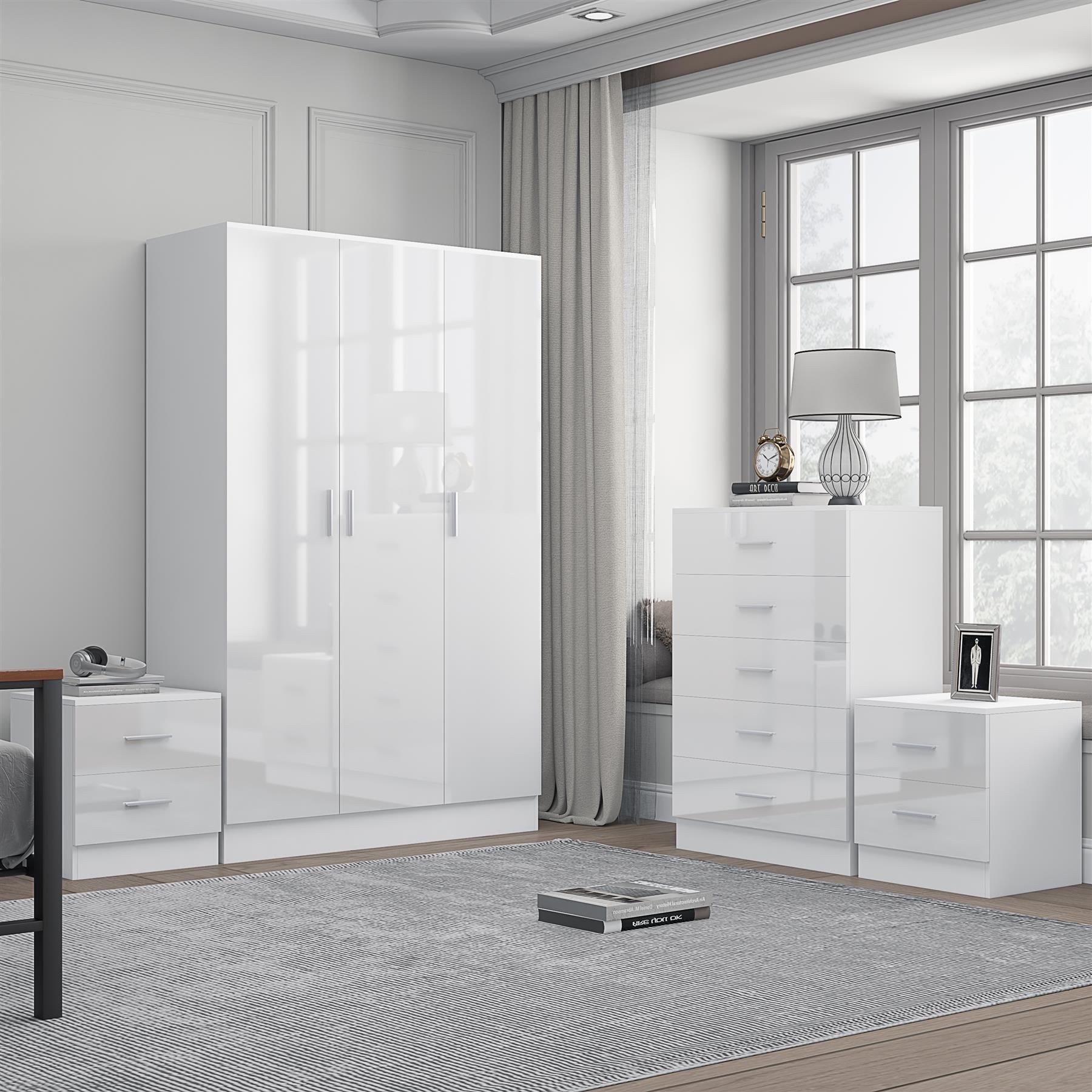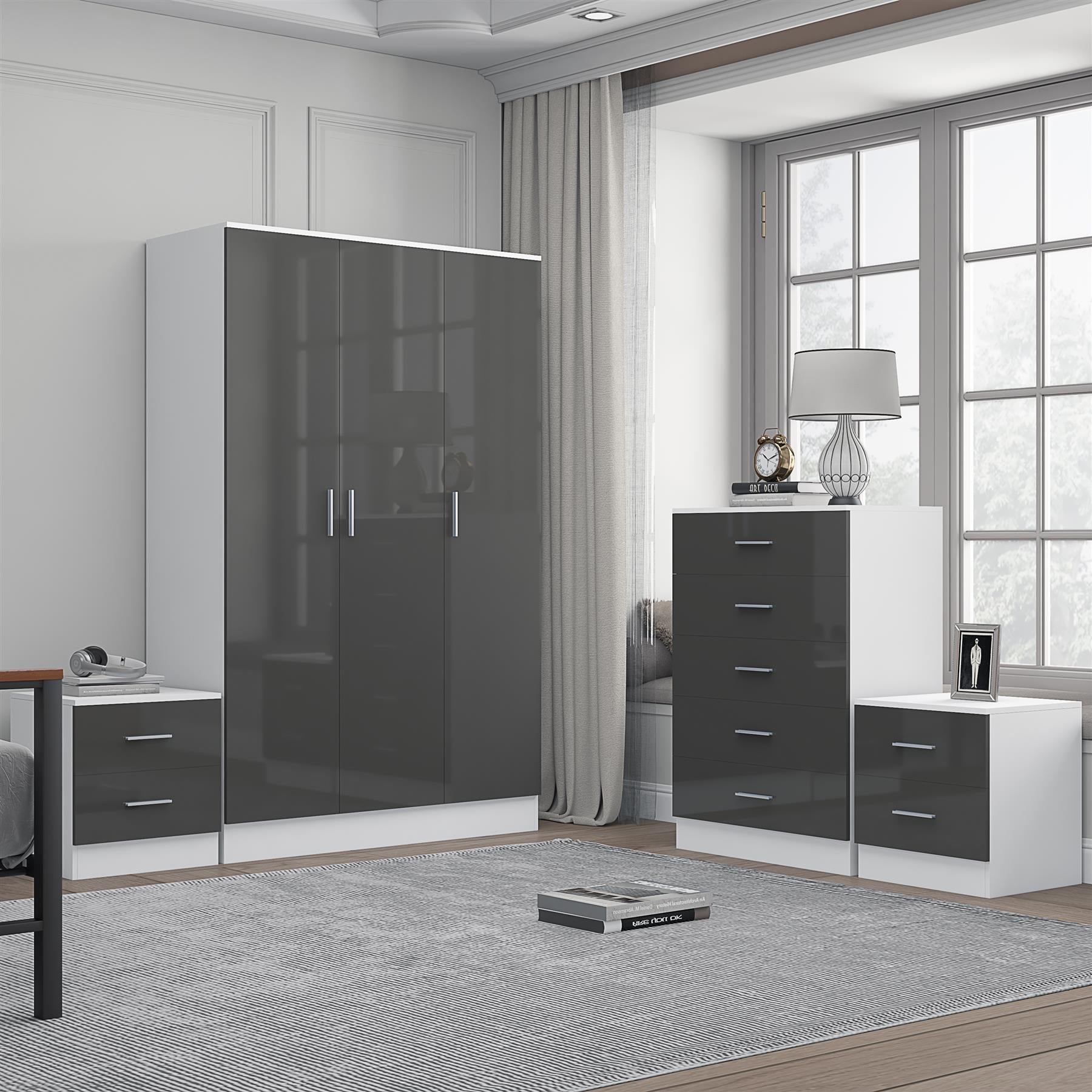 £359.99£329.99REFLECT Gloss 4pc Bedroom Set - 3 Door Wardrobe + 5 Draw Chest + 2 Bedsides