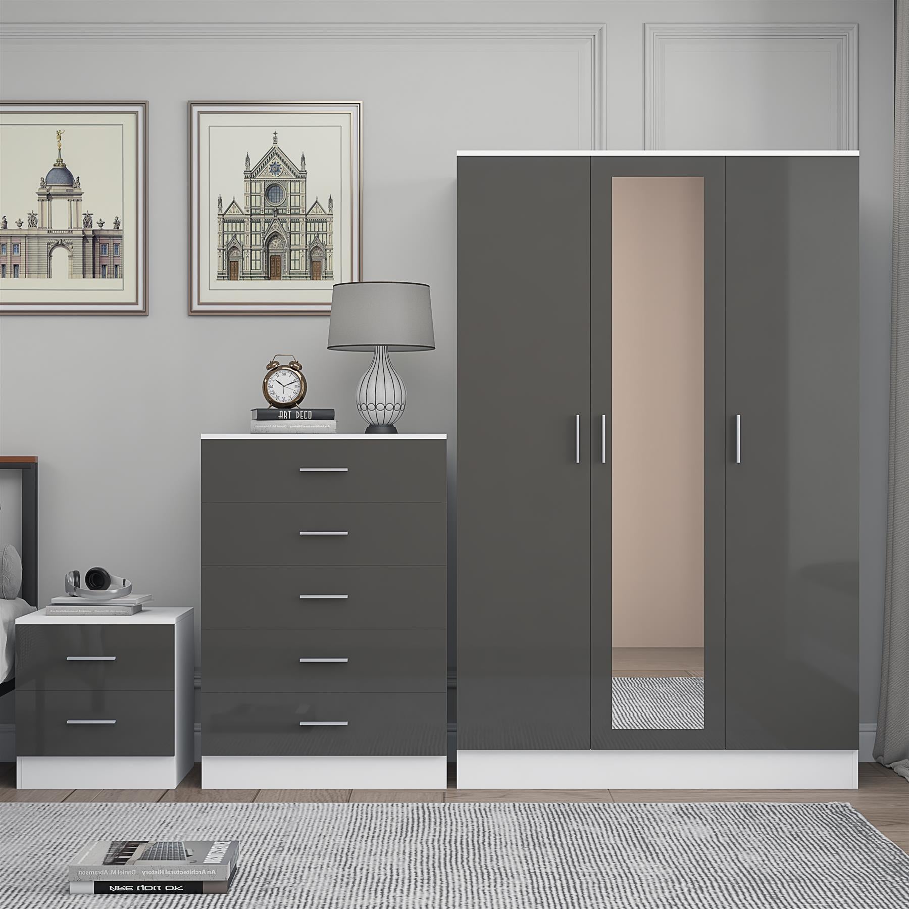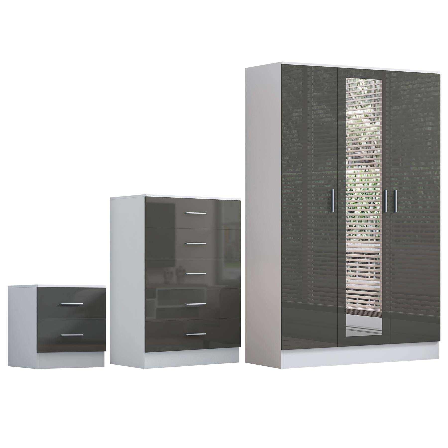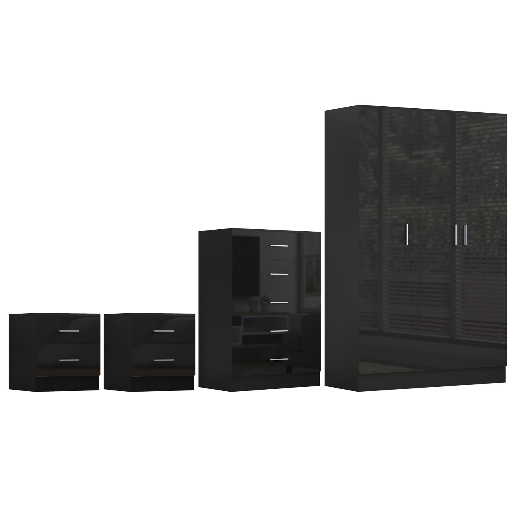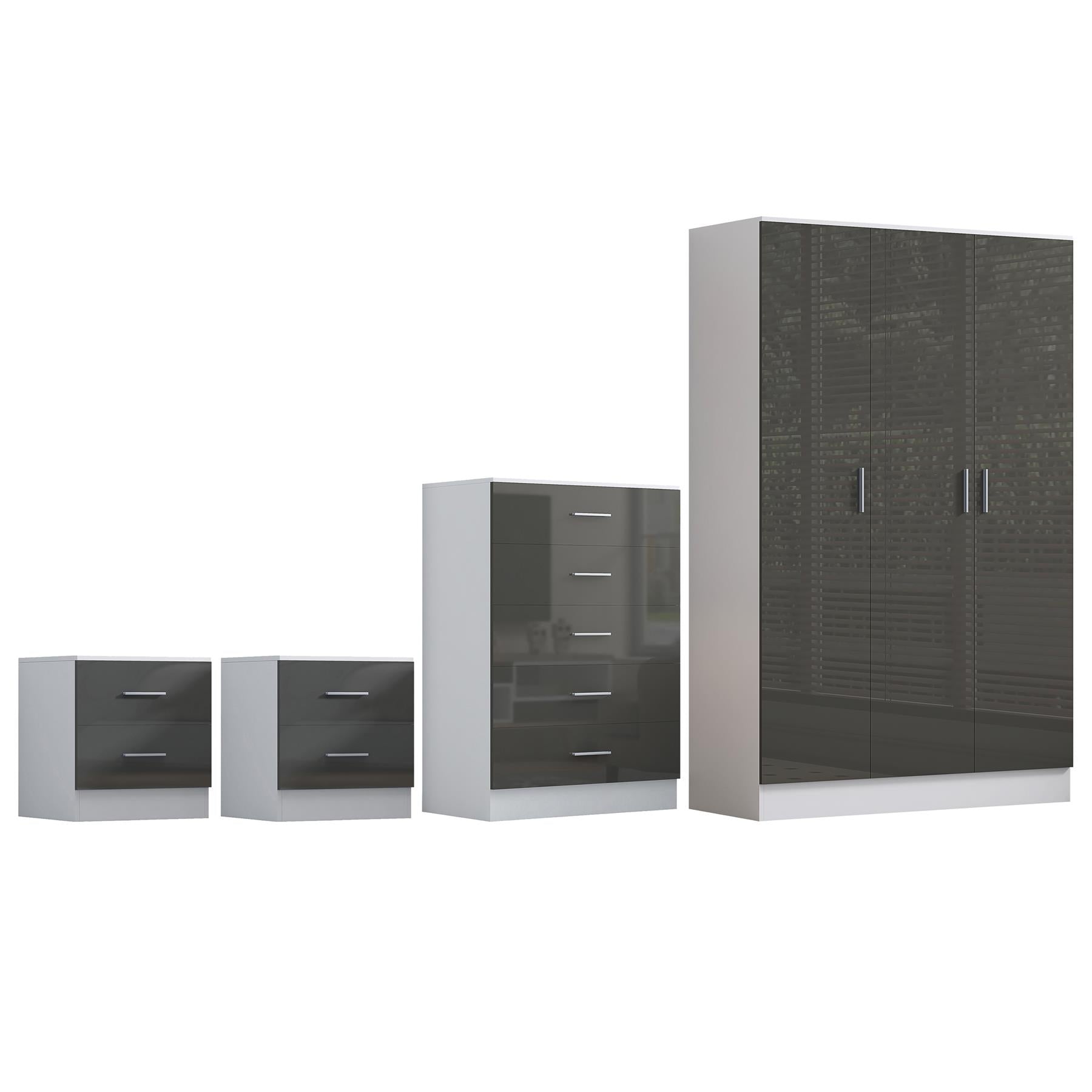 £359.99£329.99REFLECT Gloss 4pc Bedroom Set - 3 Door Wardrobe + 5 Draw Chest + 2 Bedsides