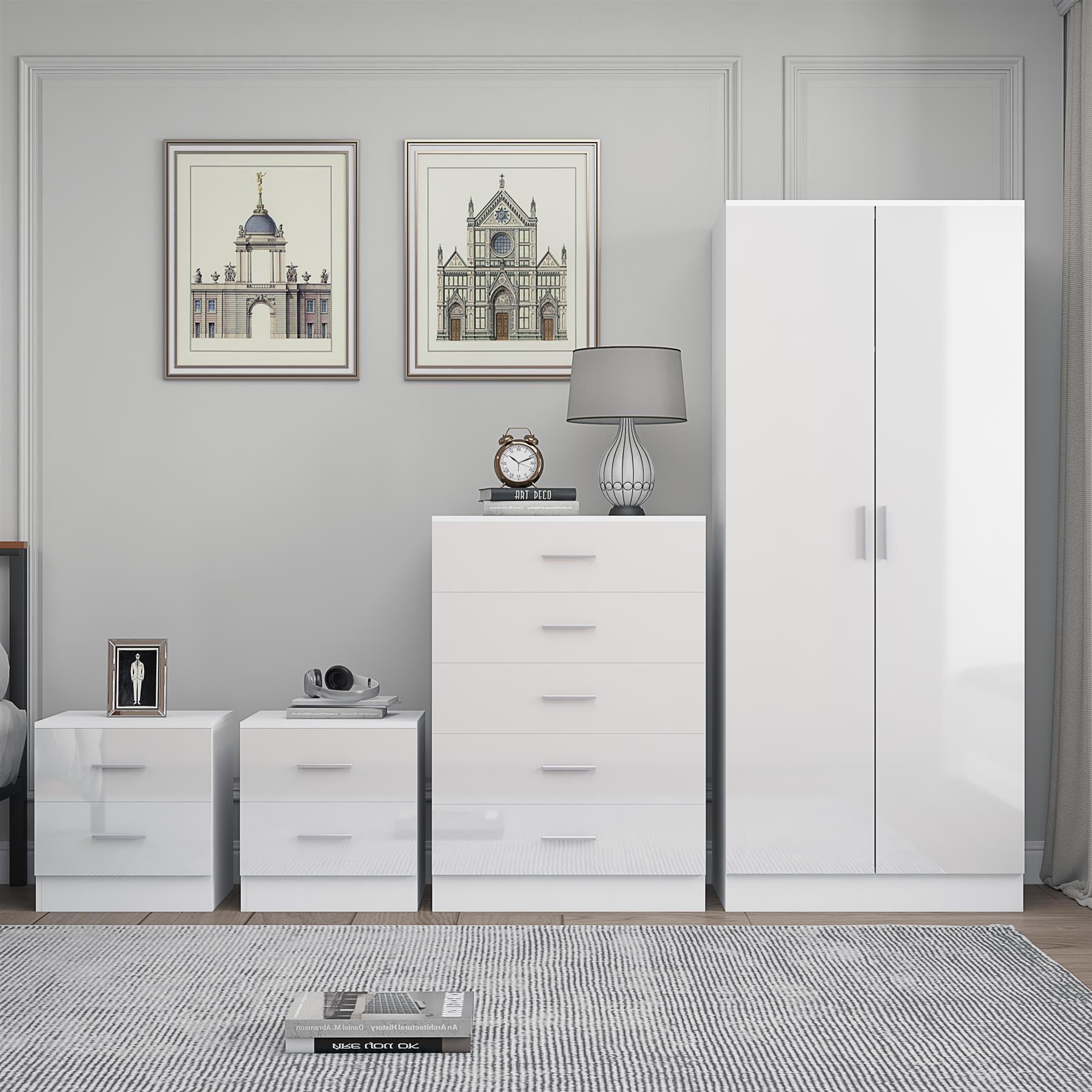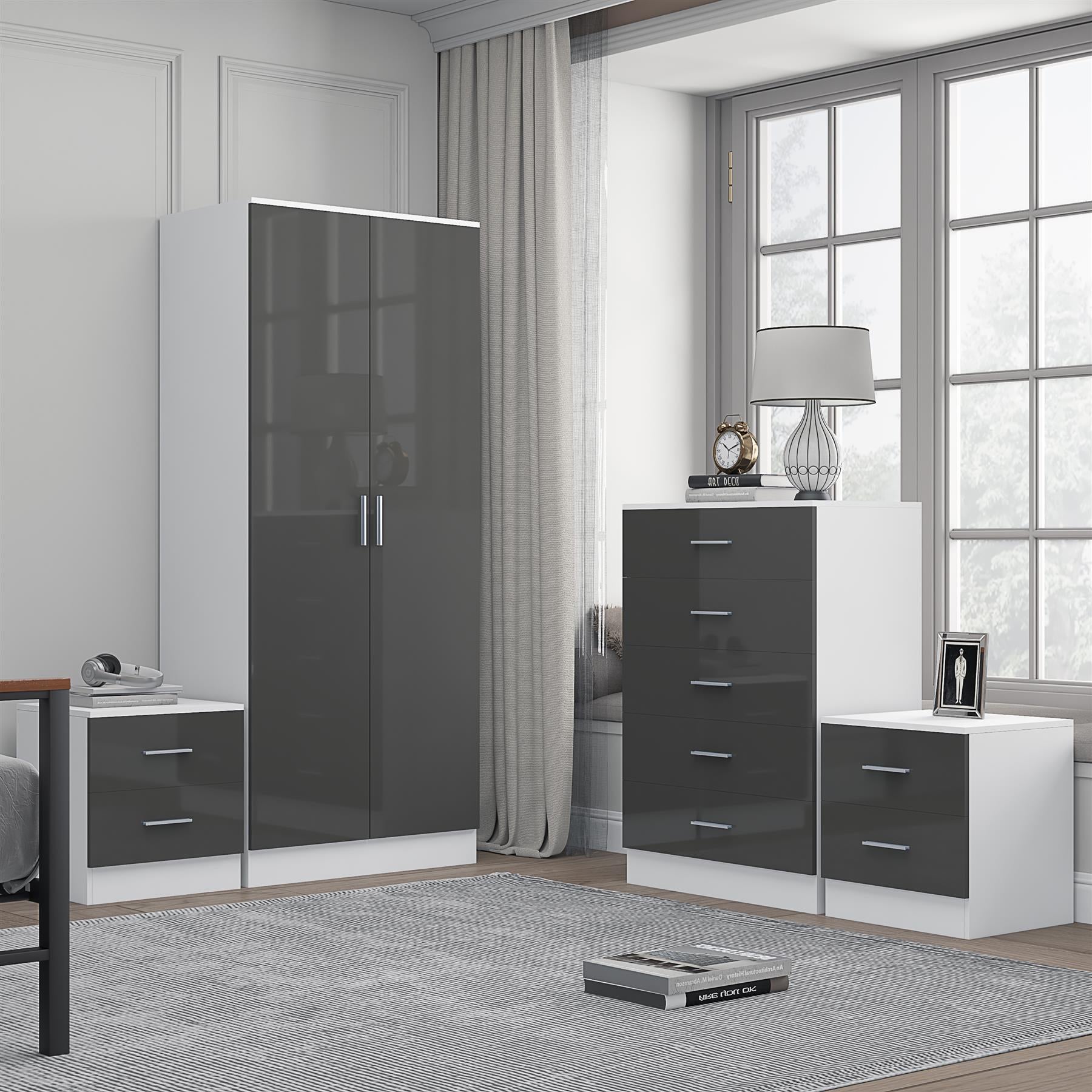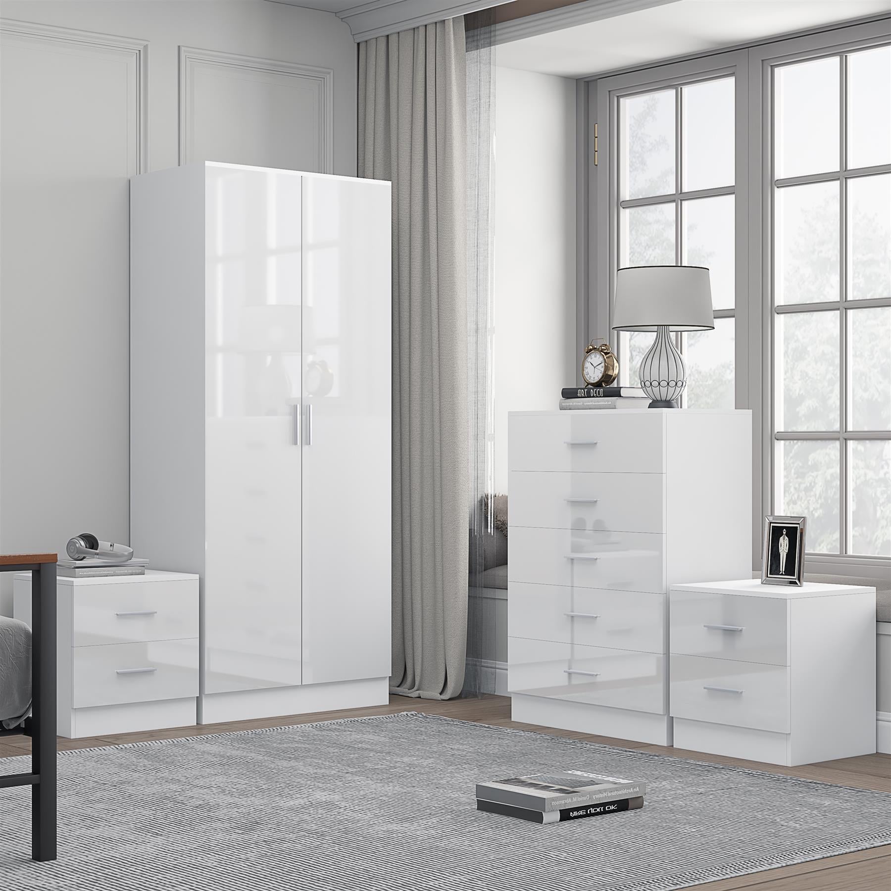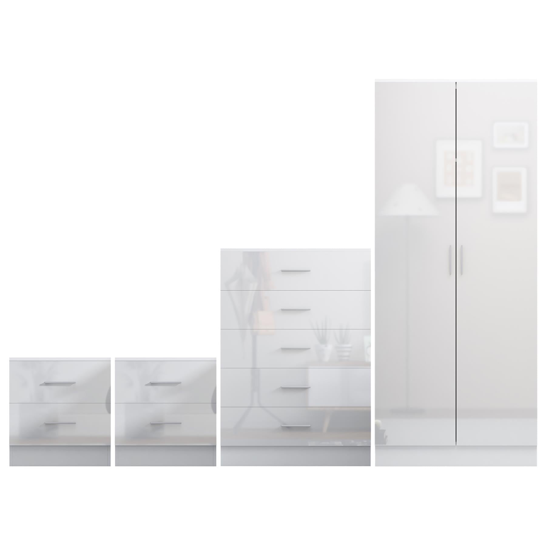 £299.99£279.99REFLECT Gloss 4pc Bedroom Set - 2 Door Wardrobe + 5 Draw Chest + 2 Bedsides
