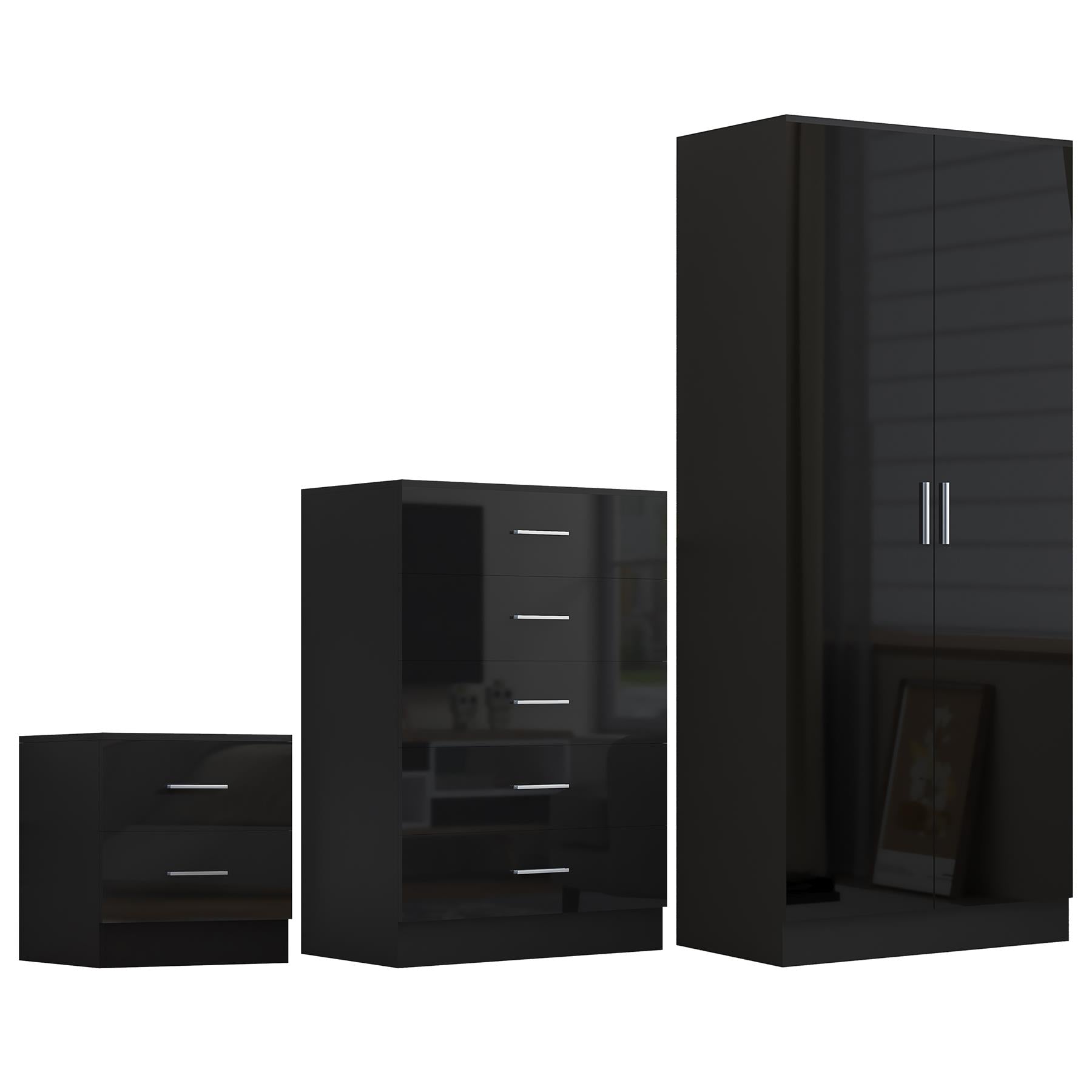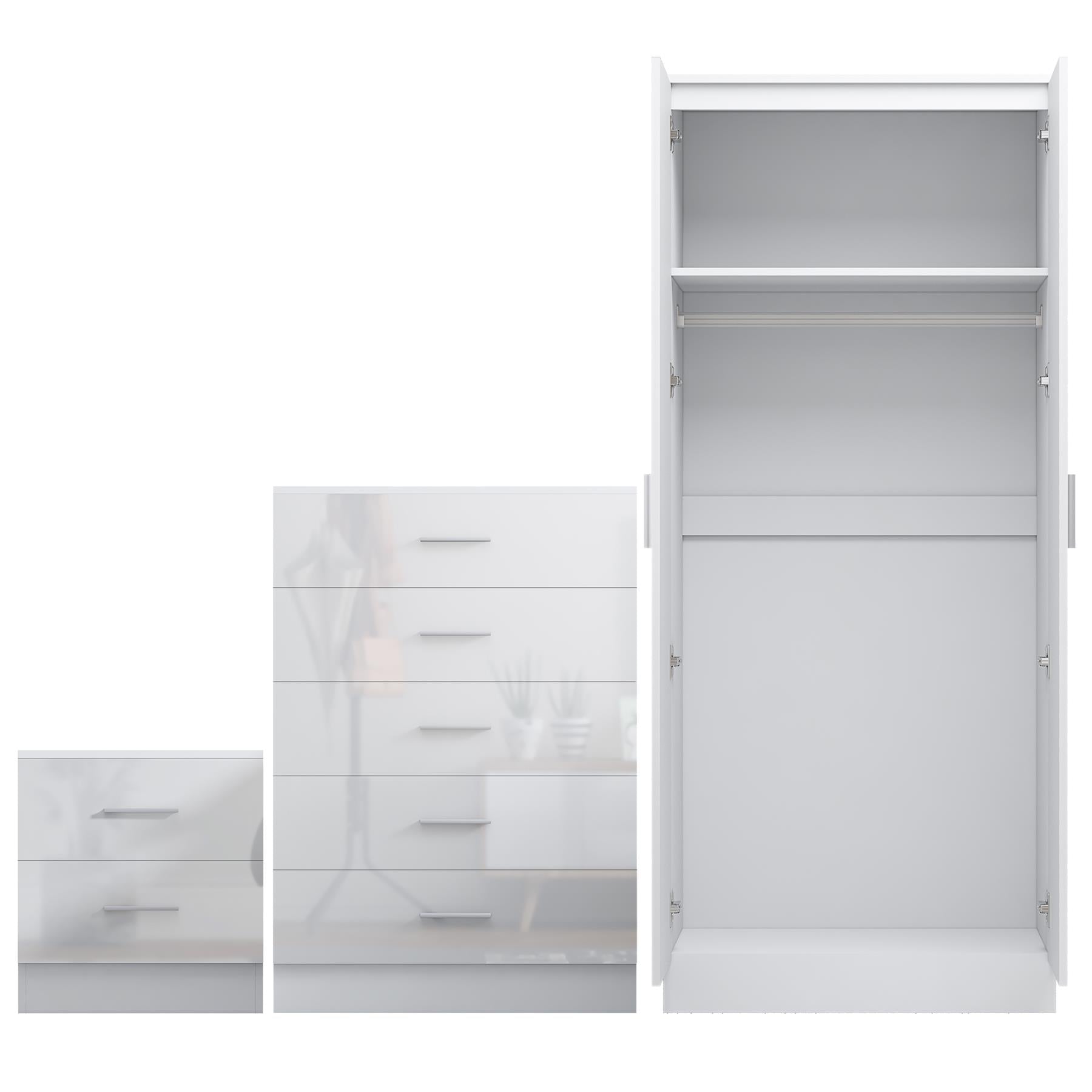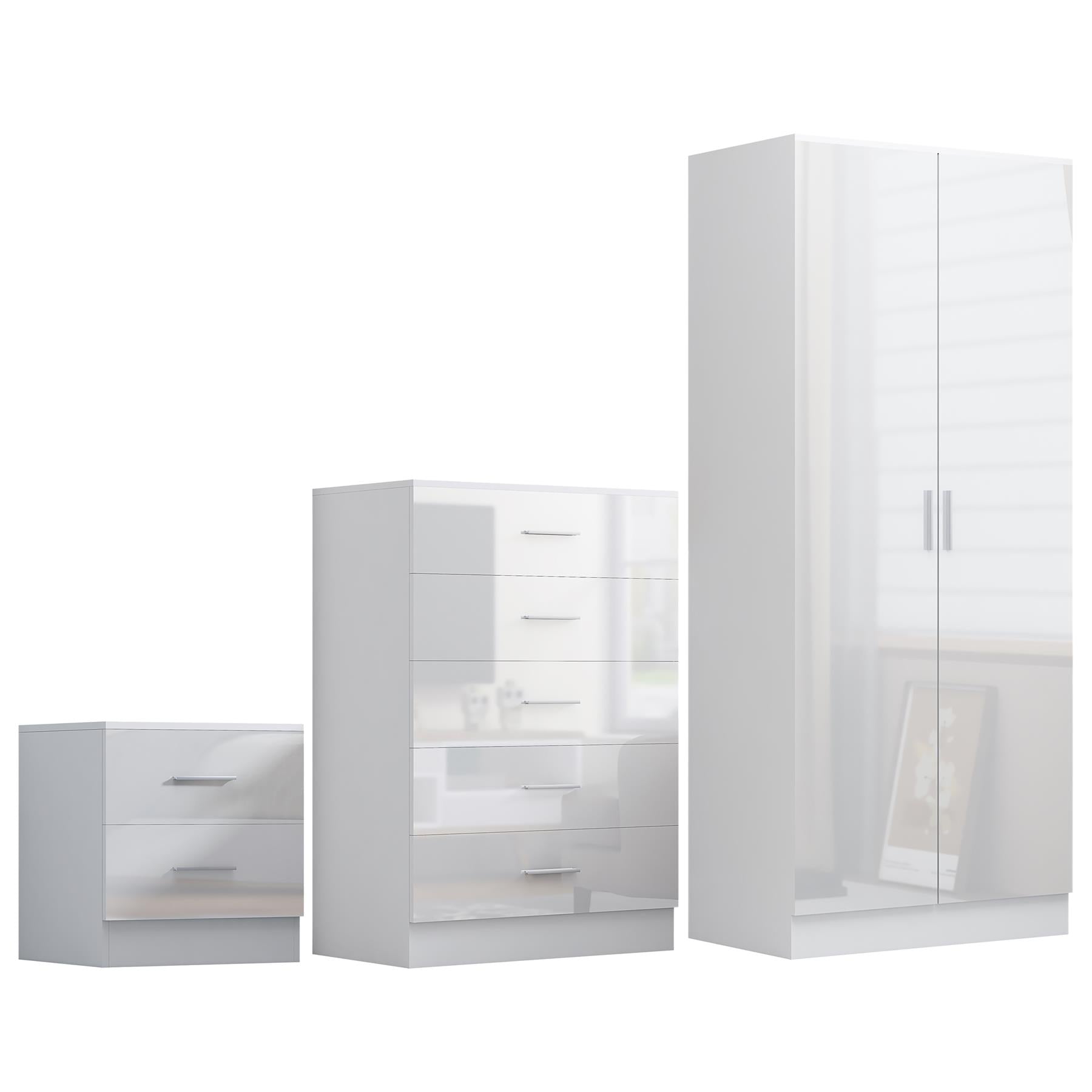 £279.99£259.99REFLECT Gloss 3pc Bedroom Set - 2 Door Wardrobe + 5 Draw Chest + Bedside