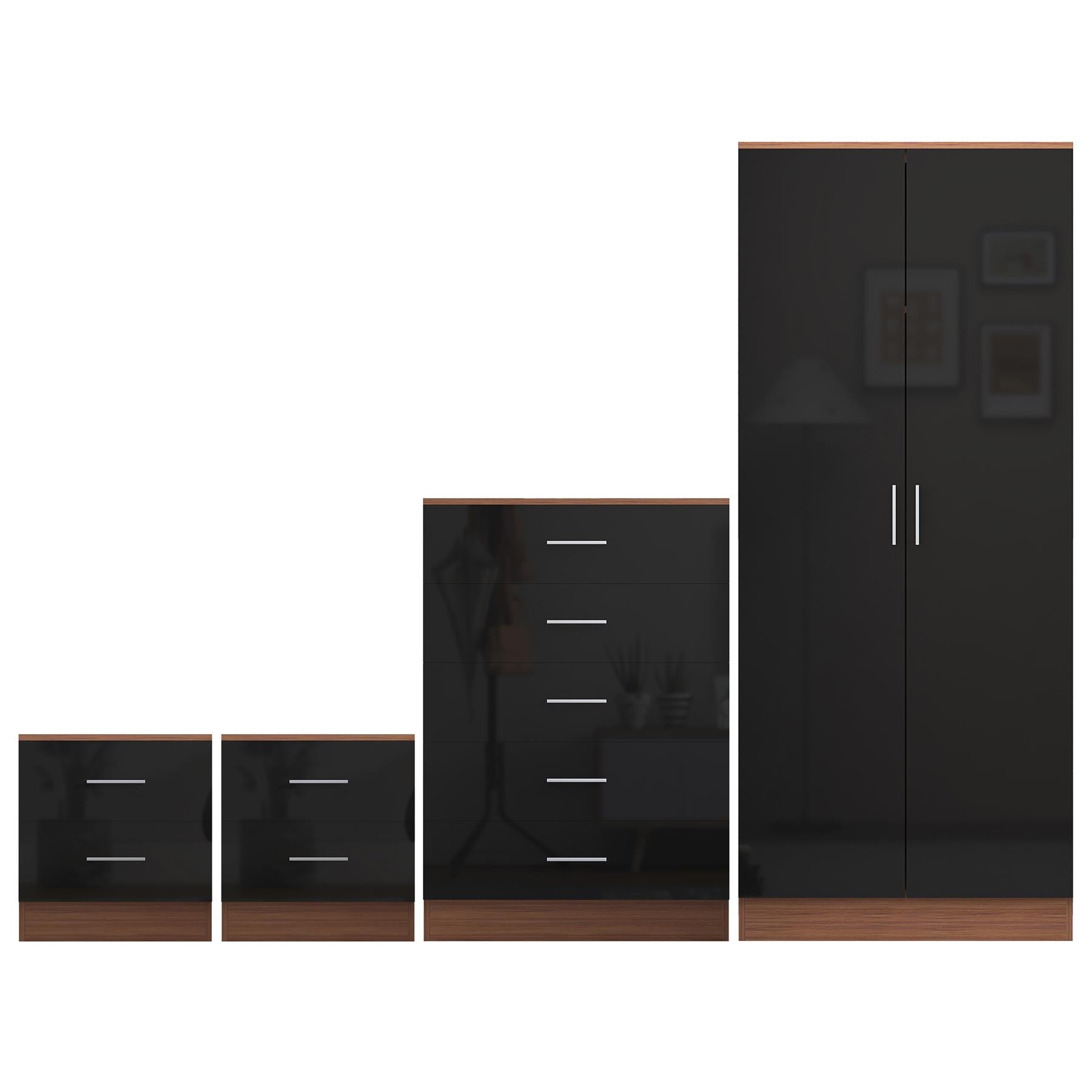 £279.99£249.99REFLECT Gloss 4pc Bedroom Set - 1 Door Wardrobe + 5 Draw Chest + 2 Bedsides