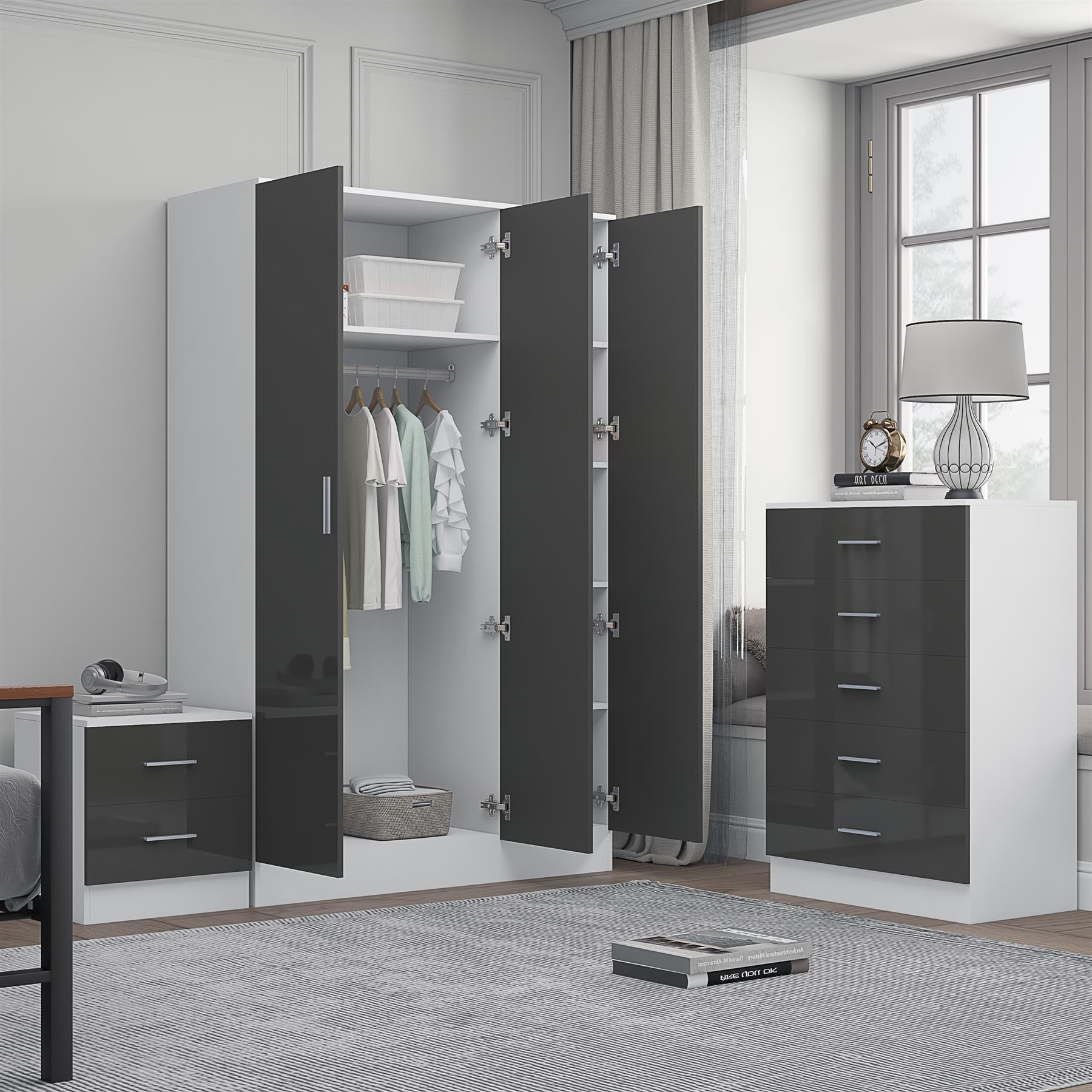 SaleREFLECT Gloss 4 Door Wardrobe Bundle Inc 2 Door Corner + 2 Door Bedroom Set