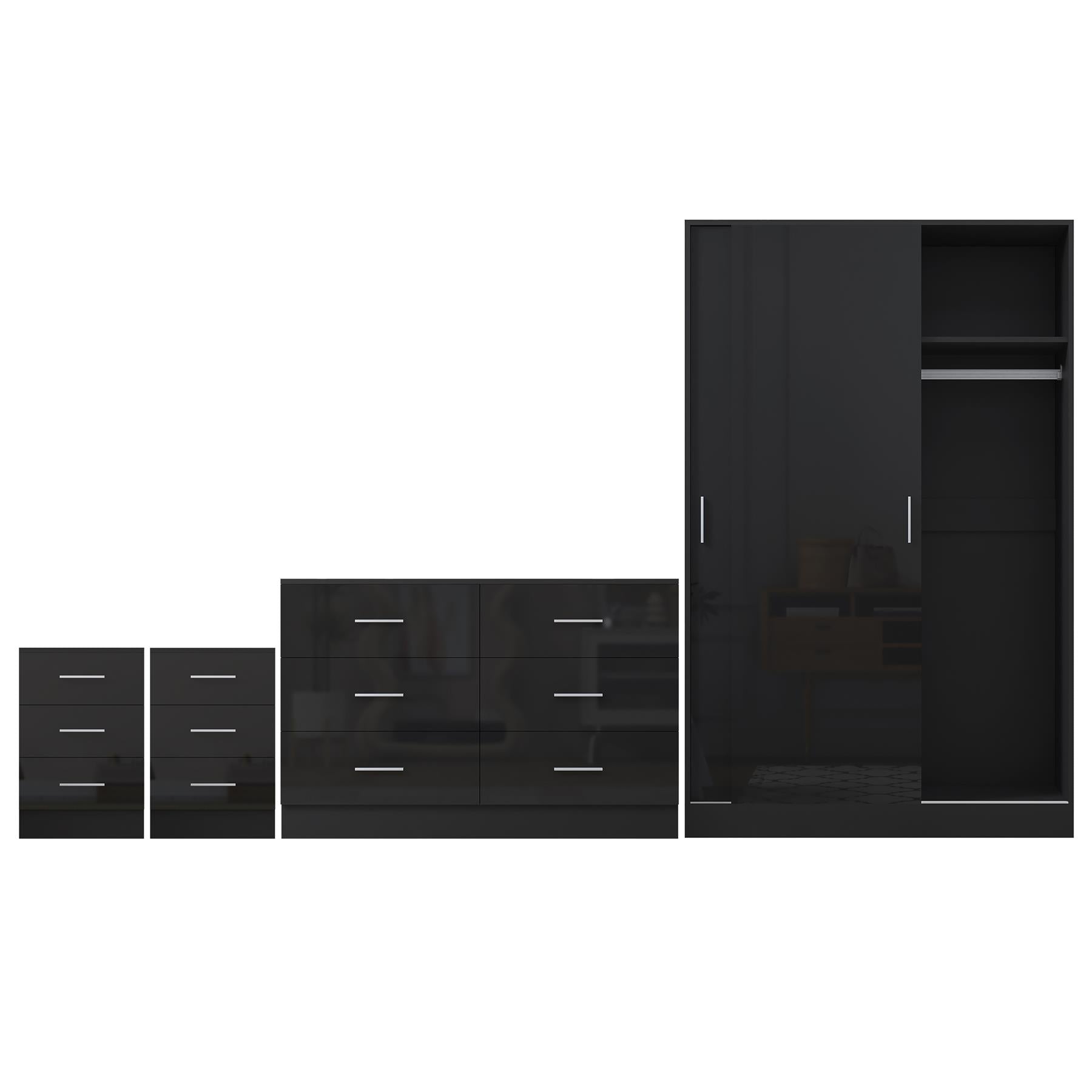 £359.99£319.99REFLECT Gloss 4pc Set - 2 Door Sliding Wardrobe + 5 Draw Chest + 2 Bedsides
