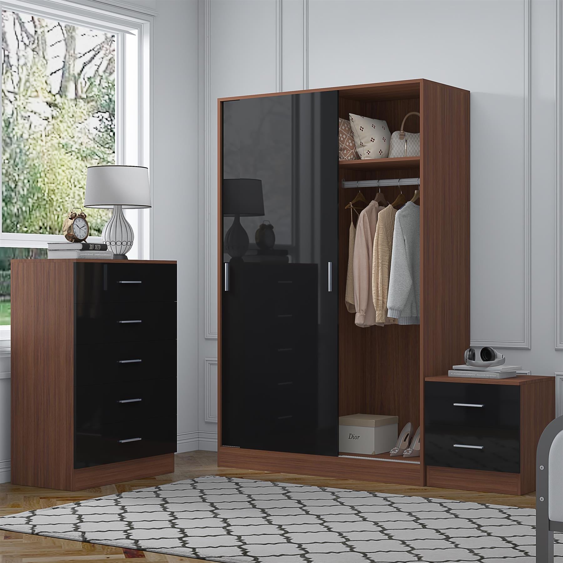 £339.99£299.99REFLECT Gloss 3pc Set - 2 Door Sliding Wardrobe + 5 Draw Chest + Bedside