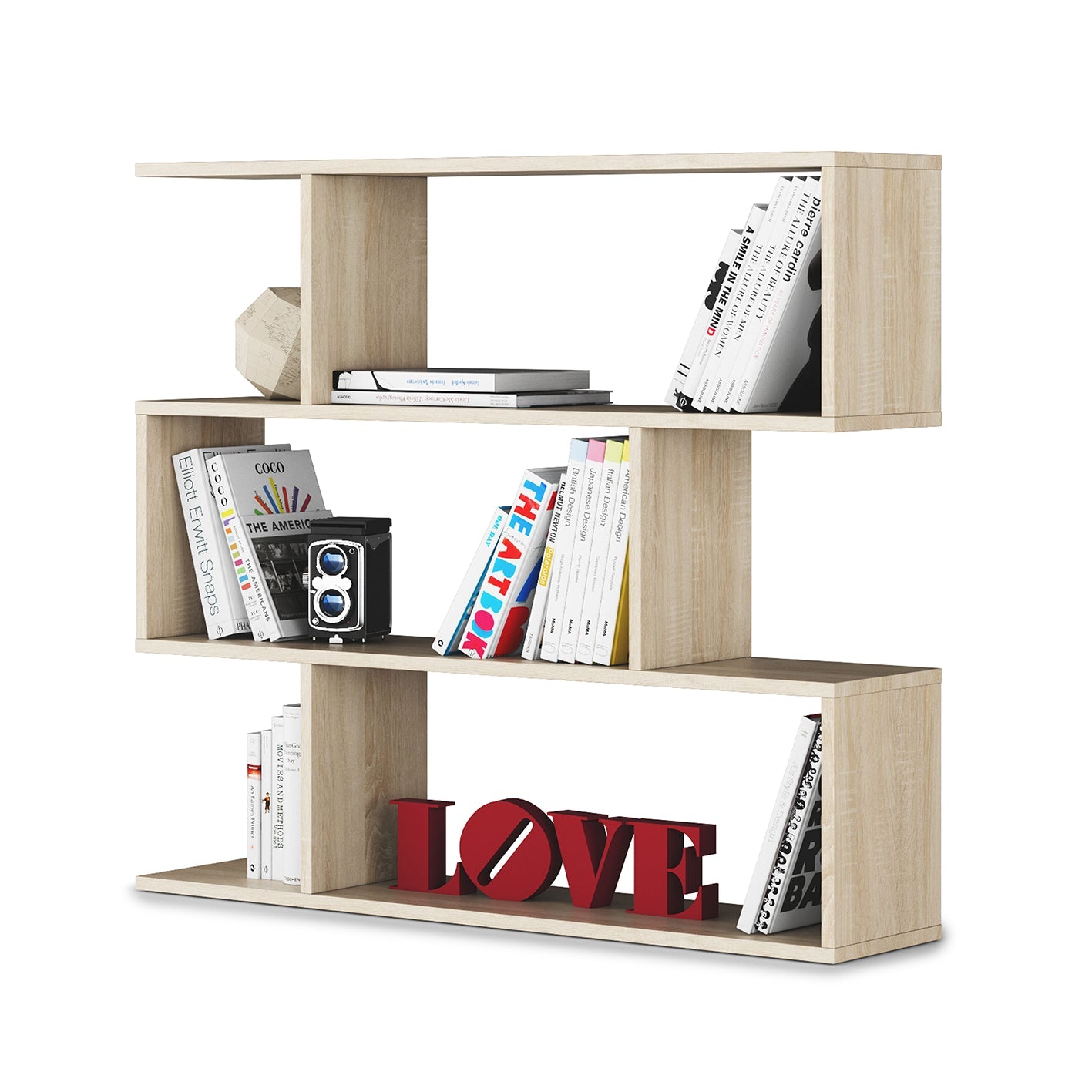 Sale3 Tier Open Low Wide Storage Unit with Compartments, Freestanding Display Bookshelf for Living Room, Office & Study - Light Oak