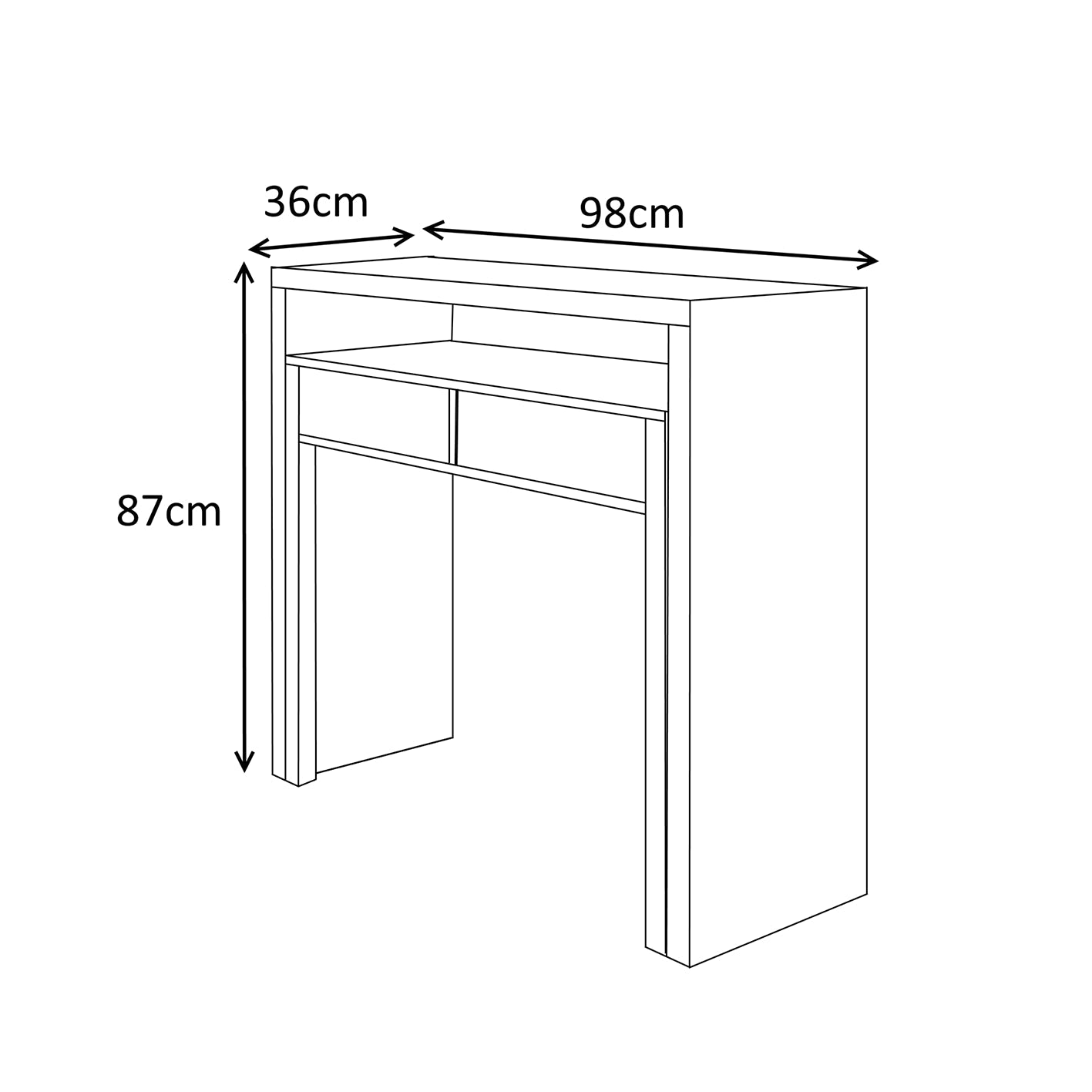 SaleReflect 4 Drawer Desk - Black Gloss & Black Oak - Modern Bedroom Storage for Vanity, Work or Study - H: 72cm x W: 99cm x D: 39.5cm