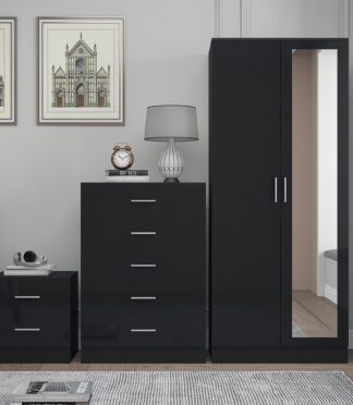REFLECT Bedroom Furniture Set – 2 Door Mirrored Wardrobe + 5 Drawer Chest + 2 Drawer Bedside REFLECT combines style and practicality with modern furniture designed to elevate your bedroom. This set features a sleek 2 Door Mirrored Wardrobe, a stylish 5 Drawer Chest, and a compact 2 Drawer Bedside, all with a high gloss…