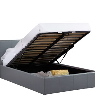 Equipped with a gas-lift mechanism, lifting the bed is effortless, providing you with quick and easy access to the under-bed storage without requiring excessive strength. The bed features a sturdy metal frame, finished in high-quality faux leather, with elegant stitch detailing on both the headboard and footboard.