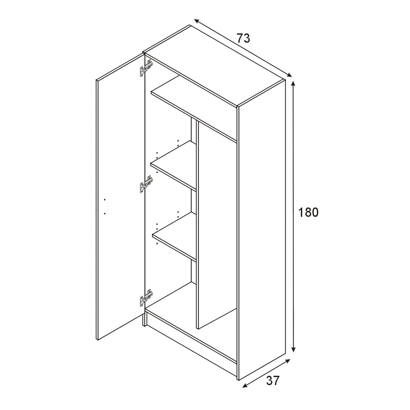 • 2 Door 4 Shelves: Height: 180cm x Width: 59cm x Depth: 37cm