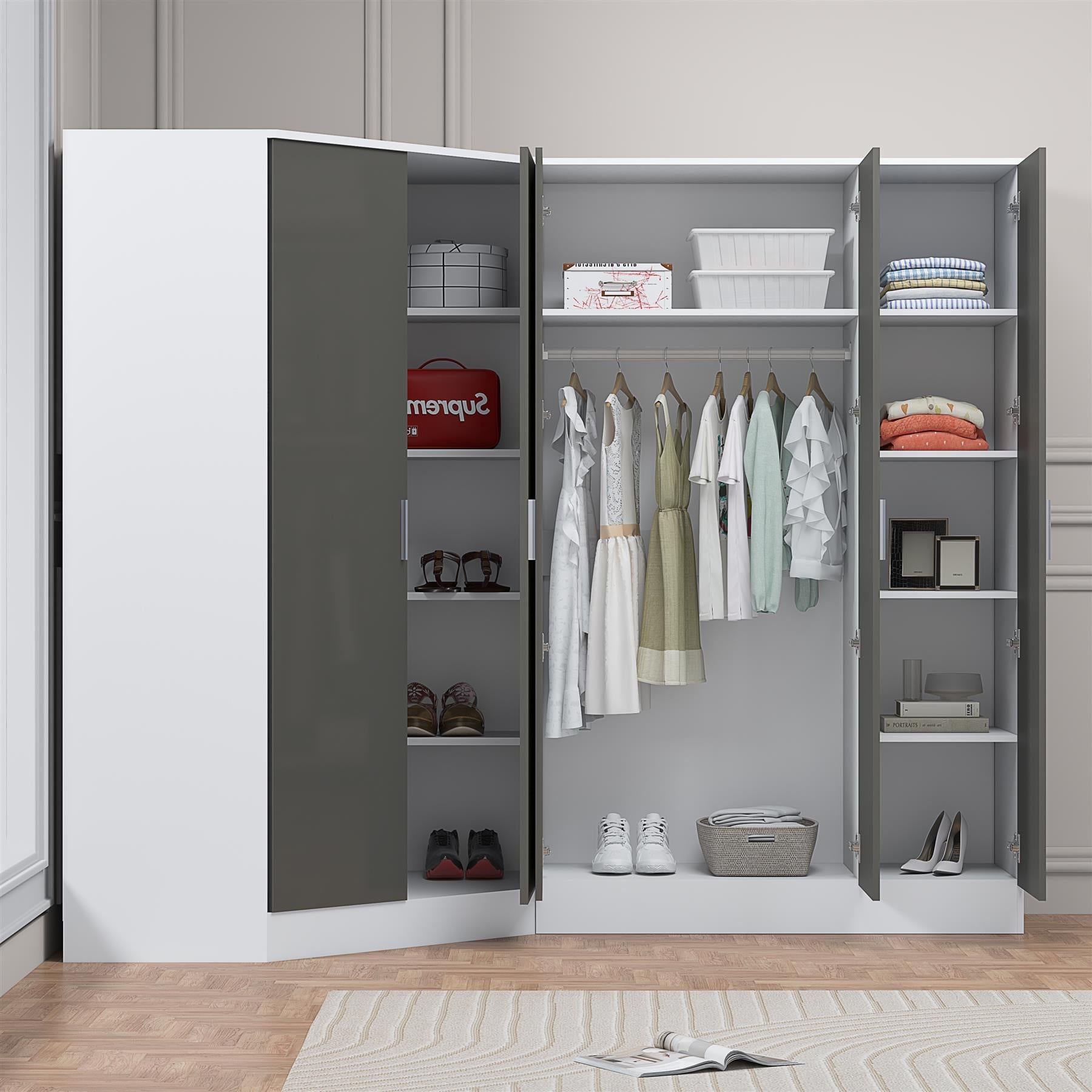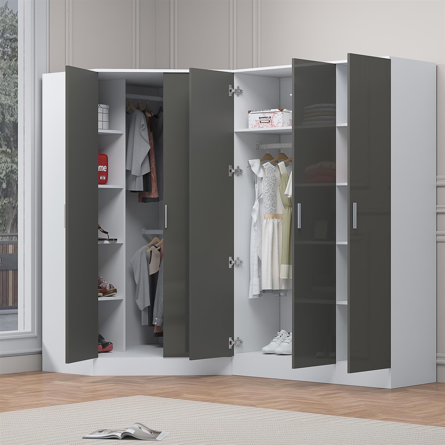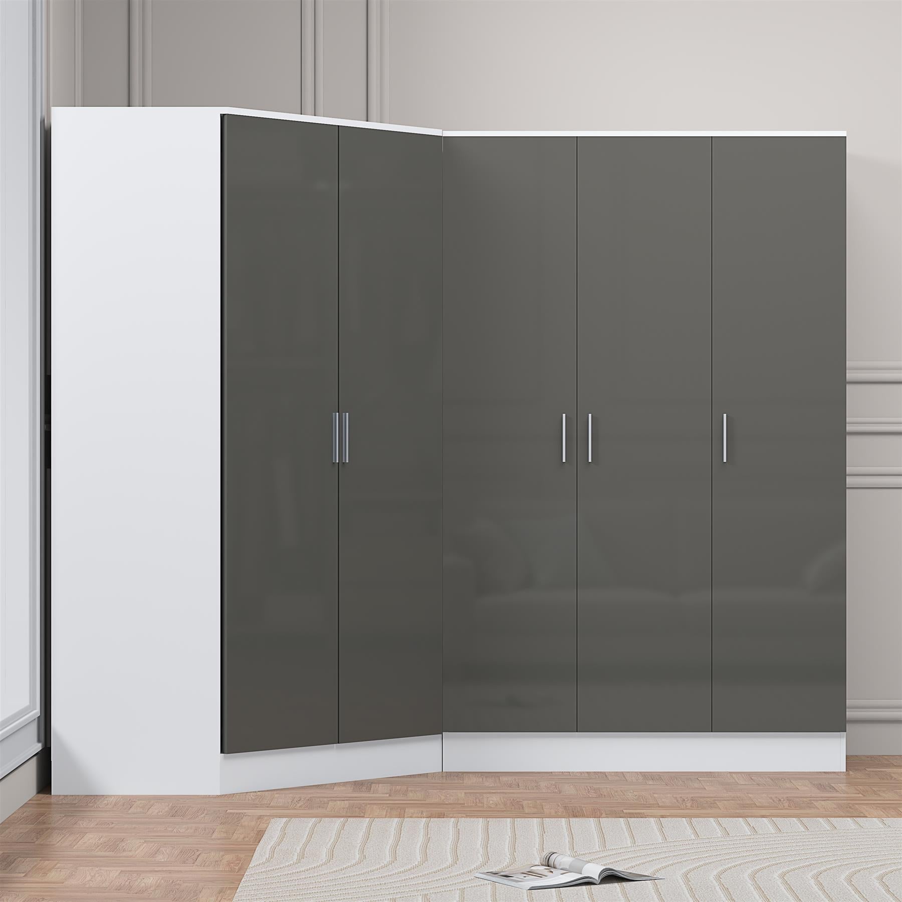 Reflect 2pc Wardrobe Bundle - 2 Door Corner + 3 Door Plain - Grey Gloss & Matt White - H: 180cm x W: 179cm x D: 103cm